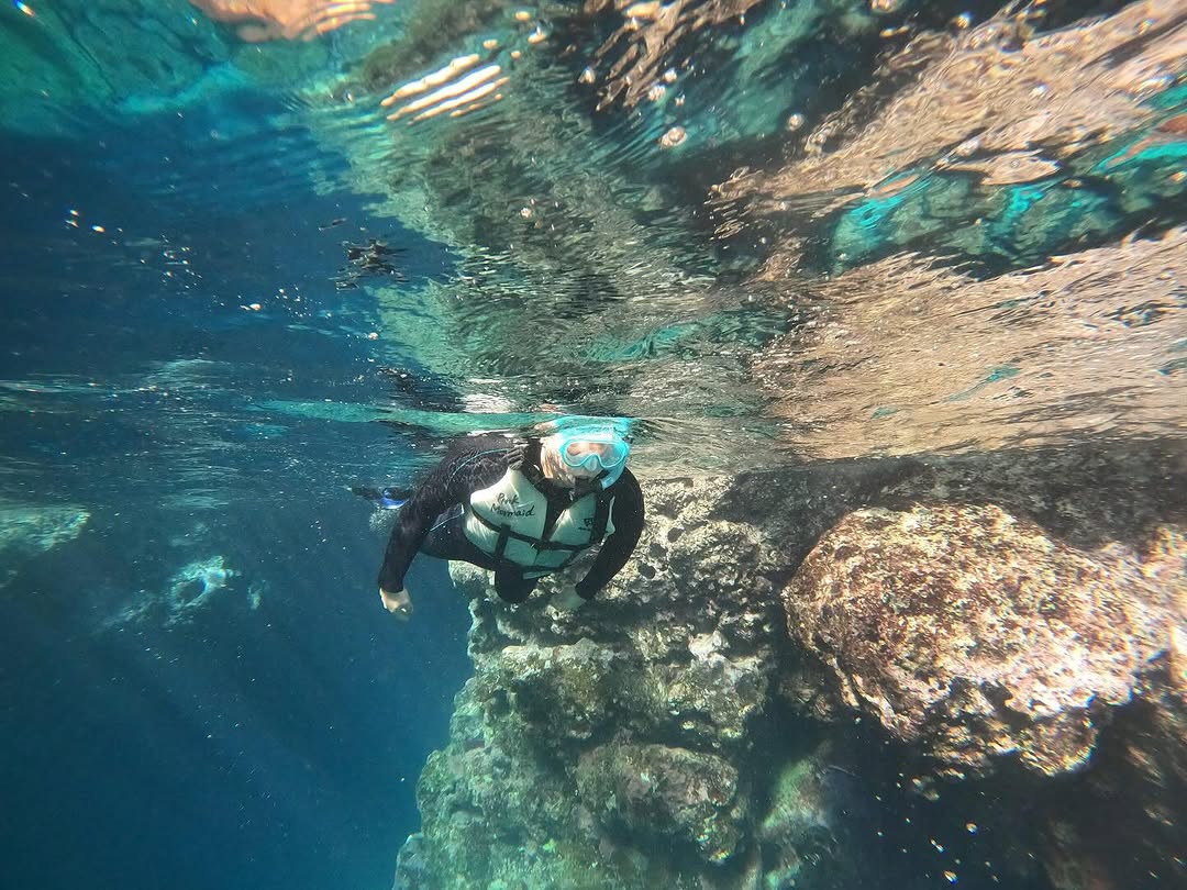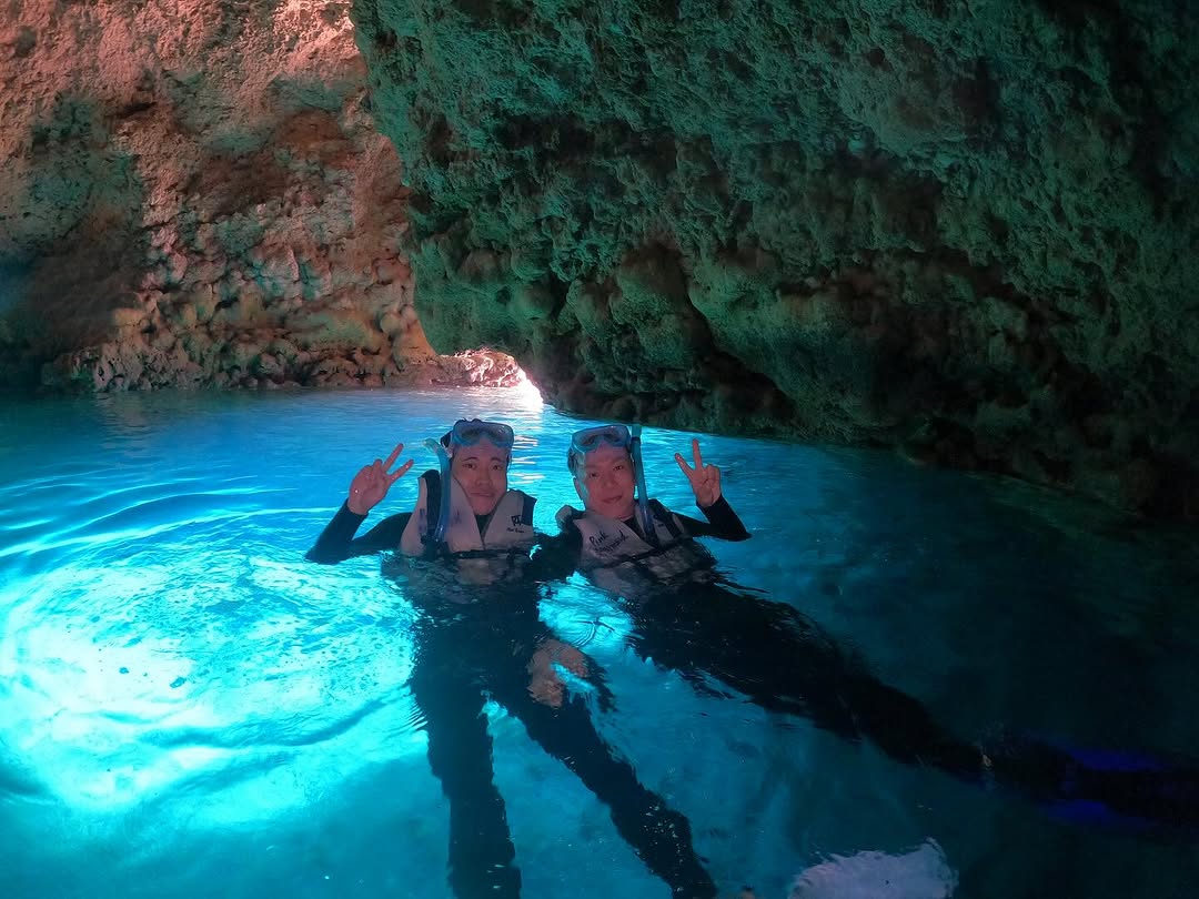 푸른 바다와 신비로운 동굴이 어우러진 오키나와. 🌞 끝없이 펼쳐진 푸른 바다 위를 유영하며 🏊 다채로운 열대어 🐟🐠 와 산호초 🪸 를 가까이에서 감상할 수 있는 특별한 스노클링 코스가 준비되어 있습니다.